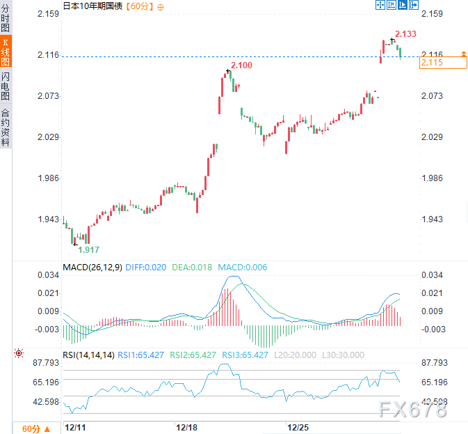 与此同时,市场对日本央行进一步加息的预期推动基准10年期日本国债收益率一度升至2.133%,创27年来新高。